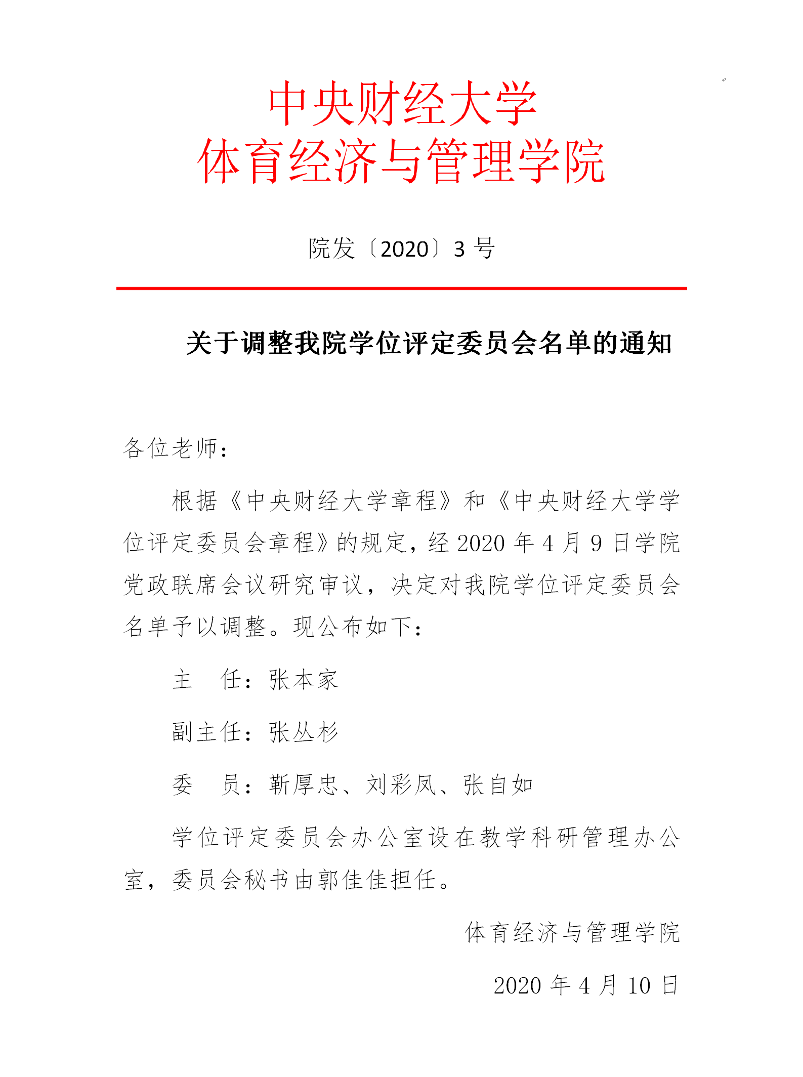 院发【2020】3号 关于调整我院学位评定委员会名单的通知