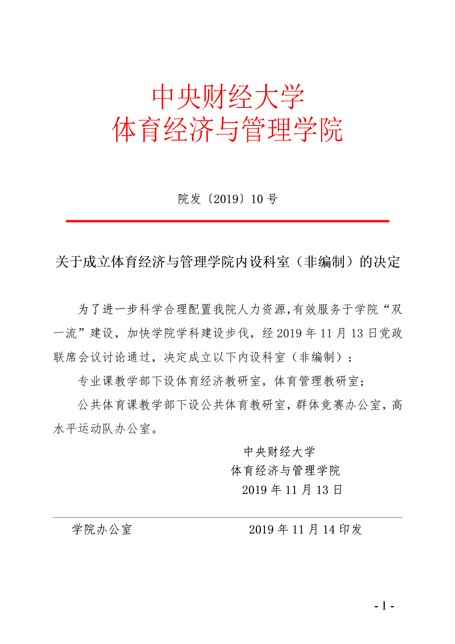 院发〔2019〕10号 关于成立英国365公司内设科室(非编制)的决定