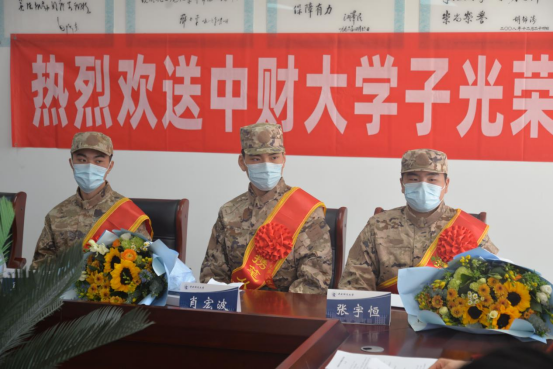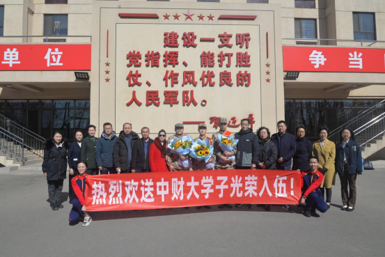 3月15日上午,我校2023年春季入伍新兵欢送会在西城区民兵训练基地报告厅举行,学院党委委员董盘齐、班主任陈绮文和辅导员刘奕轩三位老师参加了欢送会。欢送会上,老师们为肖宏波同学送上留言簿和学习用品,满载同学和老师们的祝福。参会的领导和老师也纷纷向入伍同学送上祝福与期许,叮嘱大家要牢记“忠诚、团结、求实、创新”的校训,传承中财大士兵的优良传统,刻苦训练的同时也要注重知识的学习,积极进取,淬炼成钢;同时注意与老师、同学保持联系,学校永远是大家坚强的后盾。