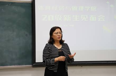 体经学院院长张本家老师第一个进行发言。他首先向来到中财的同学们表示了欢迎,向同学们重点讲解了学校和学院的发展历史、师资情况、学科建设情况等内容。张本家老师也鼓励每一位同学在未来的大学生活里,能够锐意进取,保持积极的学习态度和生活习惯。随后,体经学院副院长张丛杉老师就本院的课程安排、教学内容等方面向同学们进行了讲述,也期望每一位同学能够在未来更多地与老师进行交流,提高自己的学术素养和专业能力。就未来的课程安排,他希望每一位同学都能够不浪费课余时间,更多地充实自己,安排好自己的学习生活。