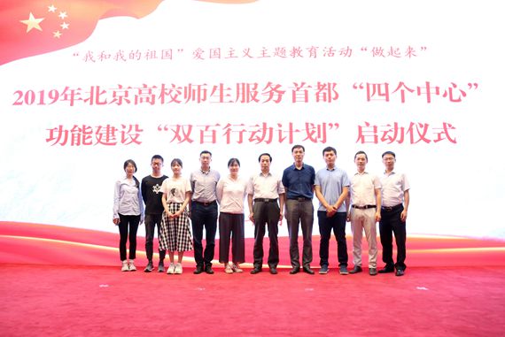 北京高校师生服务首都“四个中心”功能建设“双百行动计划”是由市委教育工委联合市相关委办局组织开展的活动。该项目每年在全市高校遴选出100个青年教师社会调研团和100个青年学生社会实践团,依托调查研究、理论宣讲、志愿服务等多种形式赴基层开展社会调研和实践活动。“双百行动计划”自2018年正式启动以来,我校师生积极参与,结合首都经济社会发展需求,发挥专业优势,开展了形式丰富的调研实践,受到了上级的高度肯定。