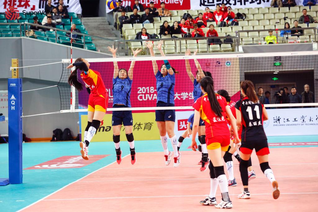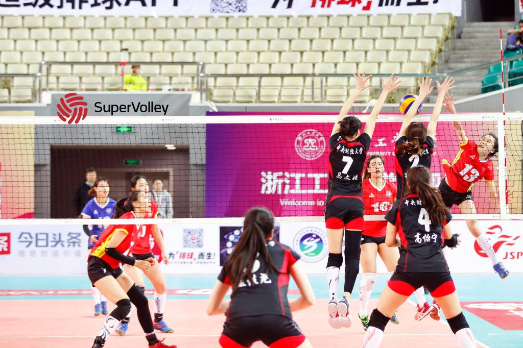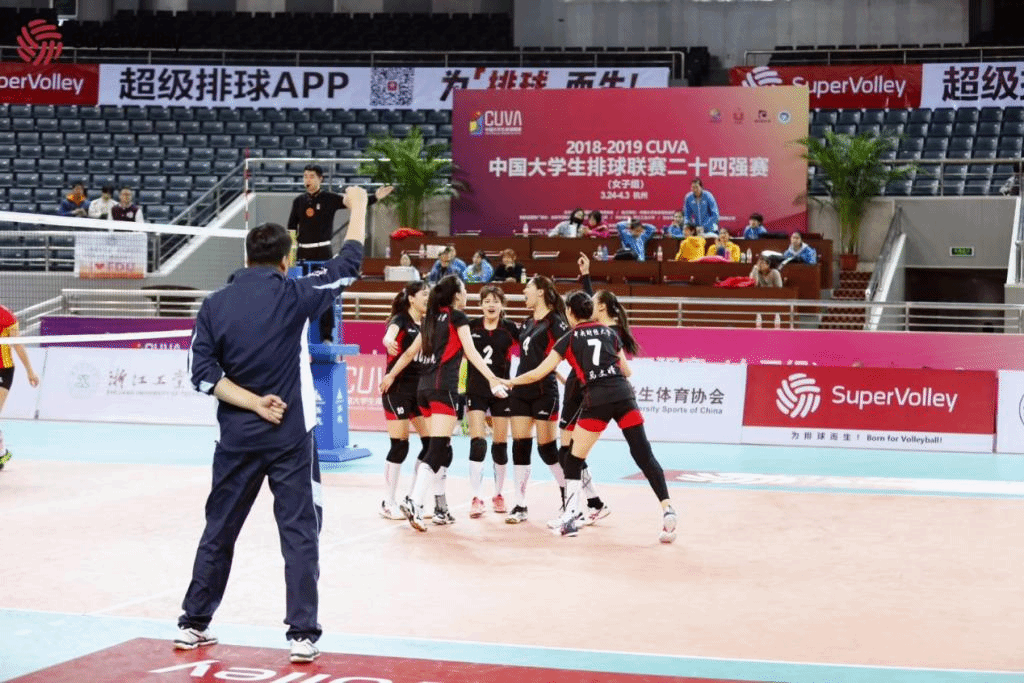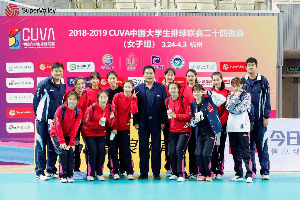 2018年3月25日——4月3日2018-2019CUVA中国大学生排球联赛二十四强赛(女子组)在浙江省杭州市浙江工业大学屏峰校区举行。本次比赛由中国大学生体育协会排球分会主办。本次比赛共有24支队伍参赛,分别由南方赛区的前12名和北方赛区的前12名共同组成。我校女排以2018-2019CUVA中国大学生排球联赛(北方赛区女子组)季军的身份晋级全国二十四强赛。本次比赛由我校高水平女子排球队在领队王欢副院长,教练员于雅光和焦懿维带队出征。