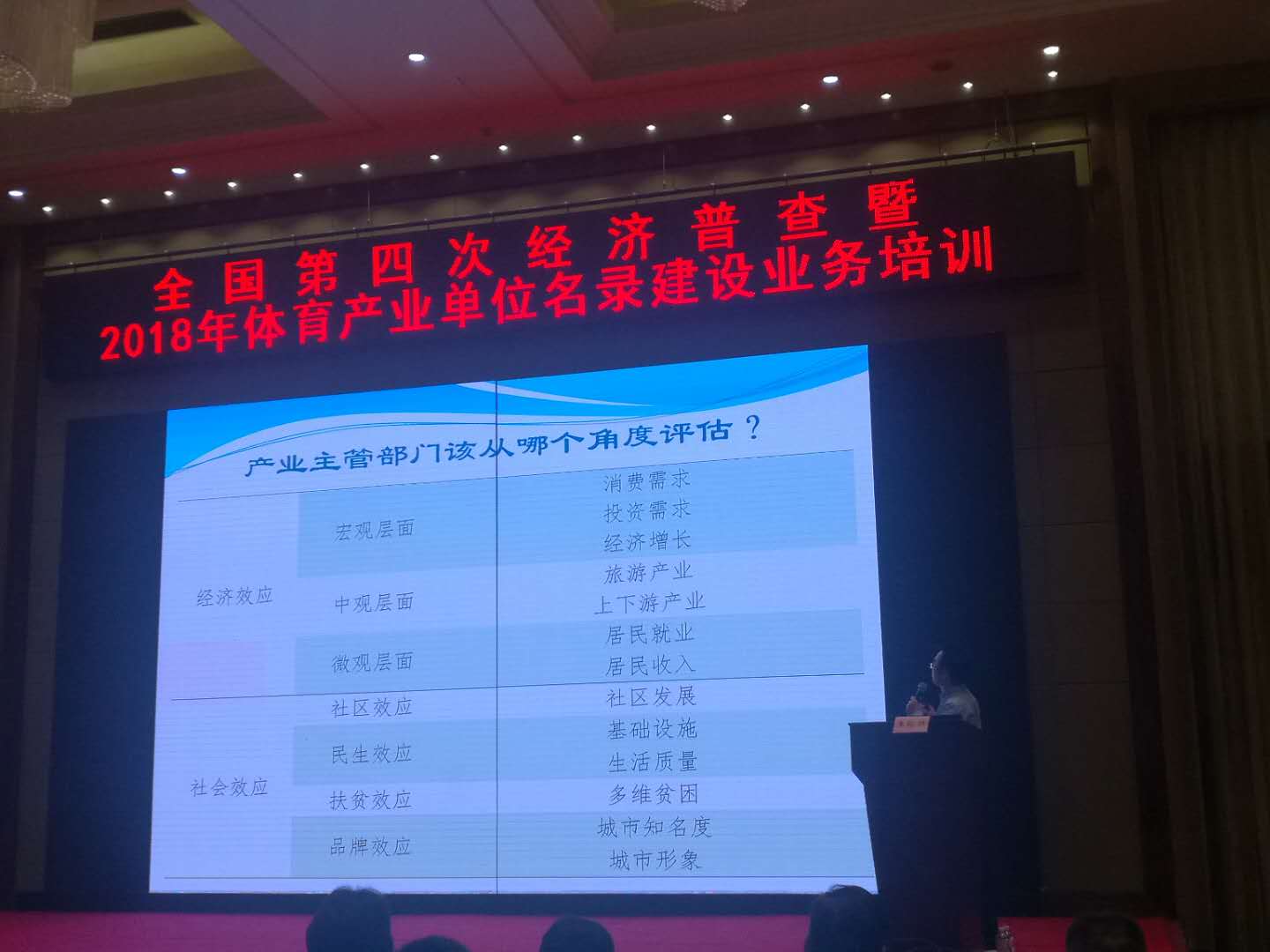 5月21日,国家体育总局主办的“全国第四次经济普查暨2018年体育产业单位名录库建设”会议在重庆召开,国家统计局副局长贾楠、国家体育总局经济司及其他相关中心领导、各省市体育局主管副局长和产业处处长参加了会议。我校英国365公司副院长王裕雄副教授作为培训专家受邀出席会议,并以其研究团队所承担的国家体育总局委托课题“2017阿拉善英雄会经济社会综合效应评价”为例,向与会代表介绍如何对体育赛事的经济社会综合效应进行定量评价。