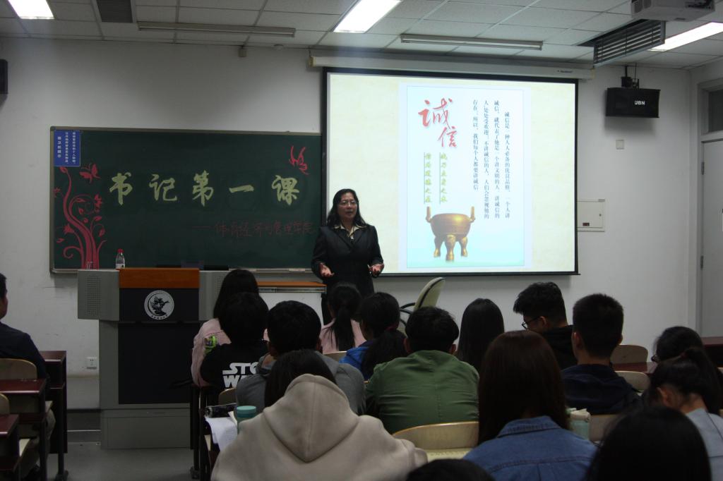 2017年10月10日晚六点半,我院在七号楼113教室开展 “书记第一课”主题讲座,旨在让大一新生在大学学习和生活中树立正确的价值观,此次讲座的主讲嘉宾是我院党委书记林琼教授,我院团总支书记兼2017级本科生辅导员张振磊老师及2017级新生参加了此次讲座。