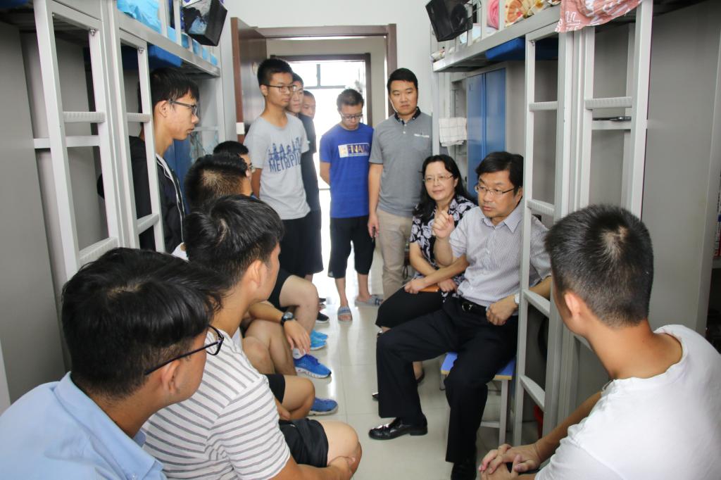 9月15日上午,在开学典礼结束后,校党委副书记梁勇老师专程来到我院新生宿舍,看望并了解我院新生的学习生活情况,我院党委书记林琼老师、新生辅导员张振磊一同参加了走访。