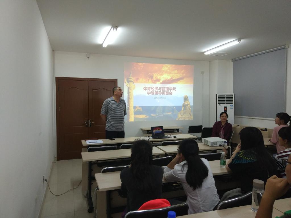 为了与新生家长更好的沟通和交流,9月7日下午4:00,我院在东区主教505召开2017级新生家长会。会议由我院团总支书记、2017级本科生辅导员张振磊老师主持,院长高涵、党委书记林琼老师、副院长王裕雄、2017级1班班主任陈绮文老师、2017级2班班主任焦懿维老师和2017级新生家长准时参加此次家长会。高涵院长介绍了体经学院的发展历程和体育产业的大好前景,介绍了体经学院的学科设置以及班级教师状况。王裕雄副院长讲述了自己对体育产业的理解,介绍了体经学院的培养体系。向家长们介绍了体经学院的学科设置以及正确的学习方法。林琼书记介绍了学院的学生工作,2017级本科生班主任、辅导员及班助的配备状况。并为家长详细介绍了转专业、考研保研和大学生活动等内容。最后,2017级1班班级助理马枢佳为家长们发放了“学院-家长互联卡”,希望家长们可以与辅导员、班主任多多联系,共同关注学生安全,思想动态方面的问题。