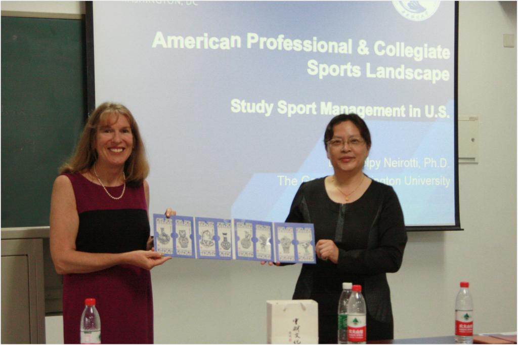 6月12日,美国乔治华盛顿大学(The George Washington University,GW)商学院副教授Lisa Delpy Neirotti到我院参观访问。来访期间,Neirotti女士为我院学生做讲座,题目是“American professional & collegiate sports landscape—— study sport management in U.S”。讲座由学院党委书记林琼教授主持,副院长王裕雄、院长助理张丛杉与我院大二、大三学生一起聆听了讲座。