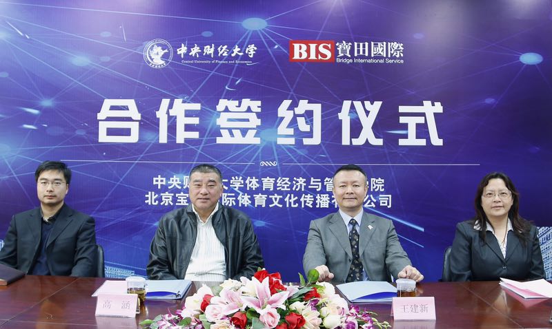 3月29日,北京宝田国际体育文化传播有限公司(下文称宝田国际)与英国365公司(下文称中财体育经管学院)“合作协议”签约仪式在英国上市公司365学术会堂举行。参加会议的双方领导包括中财体育经管学院院长高涵教授、党委书记林琼教授、院长助理张丛杉博士、学校合作发展办公室副主任范维,教育基金会副秘书长程丽芳、以及宝田国际董事长王建新先生。