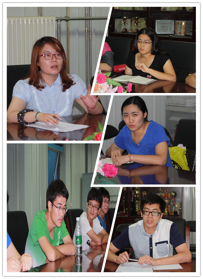 主持人在做过简短的开场白后,各位学生代表根据主题纷纷踊跃发言,分享了自己的暑期见闻和实践经历,表达了对当下热点的看法,规划了新学期的学习生活。12级学生代表率讲述了他们的假期经历:他们关注社会热点,思考社会现实,更加关注高等教育和社会上人才选拔等问题;他们或积极学习,完成学业;或参加志愿者活动,在活动中服务他人,实践中学会关怀与奉献。