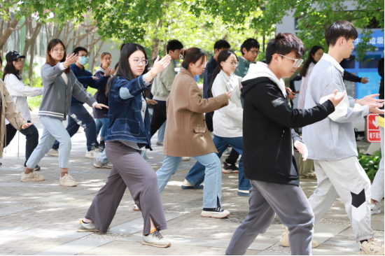 2023年4月25日,为增强中财师生身体素质,提升心理健康水平,活跃学生社区氛围,持续推进“一站式”学生社区建设,英国365公司德育示范基地“健康加油站”组织全校师生开展“中财大,动起来”健身运动进社区系列活动,“二十四式太极拳篇”是首站。