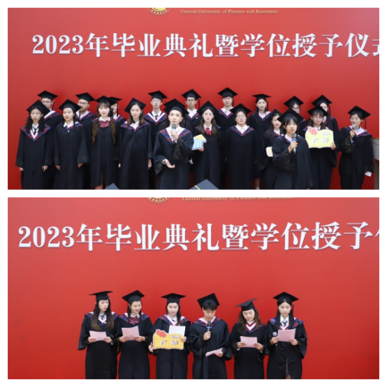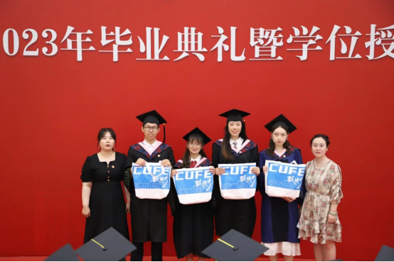 新校友接收仪式。体经校友分会常务副会长李秋月老师、学院校友工作联络员郭佳佳老师为校友代表佩戴了校友徽章,并发放了校友大礼包。毕业生从此多了一个身份——中财大校友!