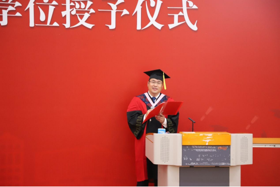 副院长张丛杉副教授宣读《关于2023届本科生毕业授予学士学位的决定》和《关于2023届研究生毕业及授予博士、硕士学位的决定》