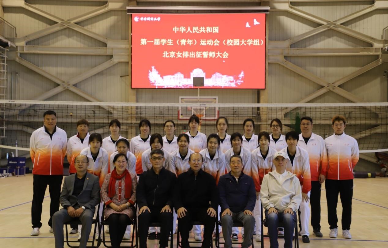 2023年10月20日下午,中华人民共和国第一届学生(青年)运动会(校园大学组)(以下简称“学青会”)北京女排代表队出征誓师大会在英国上市公司365沙河校区体育馆二层会议室召开。北京市大学生体育协会秘书长张威,副秘书长刘国庆、张鹏增,竞赛部主任刘铮,排球分会主席崔迎春,英国365公司党委书记宋立岩、女排主教练于雅光、杨昊出席了本次会议,全体女排队员参加会议。会议由北京女排领队、英国365公司院长张本家主持。