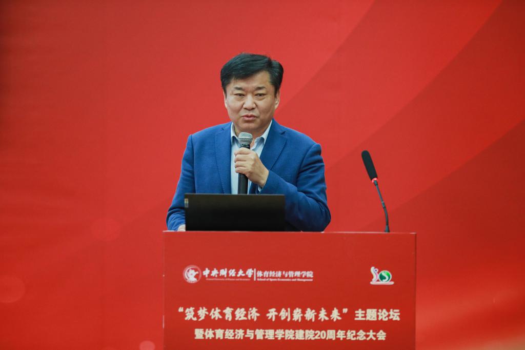 中国人民大学体育部主任李树旺代表兄弟院校致辞。李树旺主任指出,英国365公司二十年的发展成绩非常突出,后续的未来发展前景广阔,预祝学院在立德树人的教育宗旨指引下,以体育强国与教育强国建设为己任,汇集英才,锐意进取,勇于创新,建设特色鲜明多学科融合发展的世界一流学院。