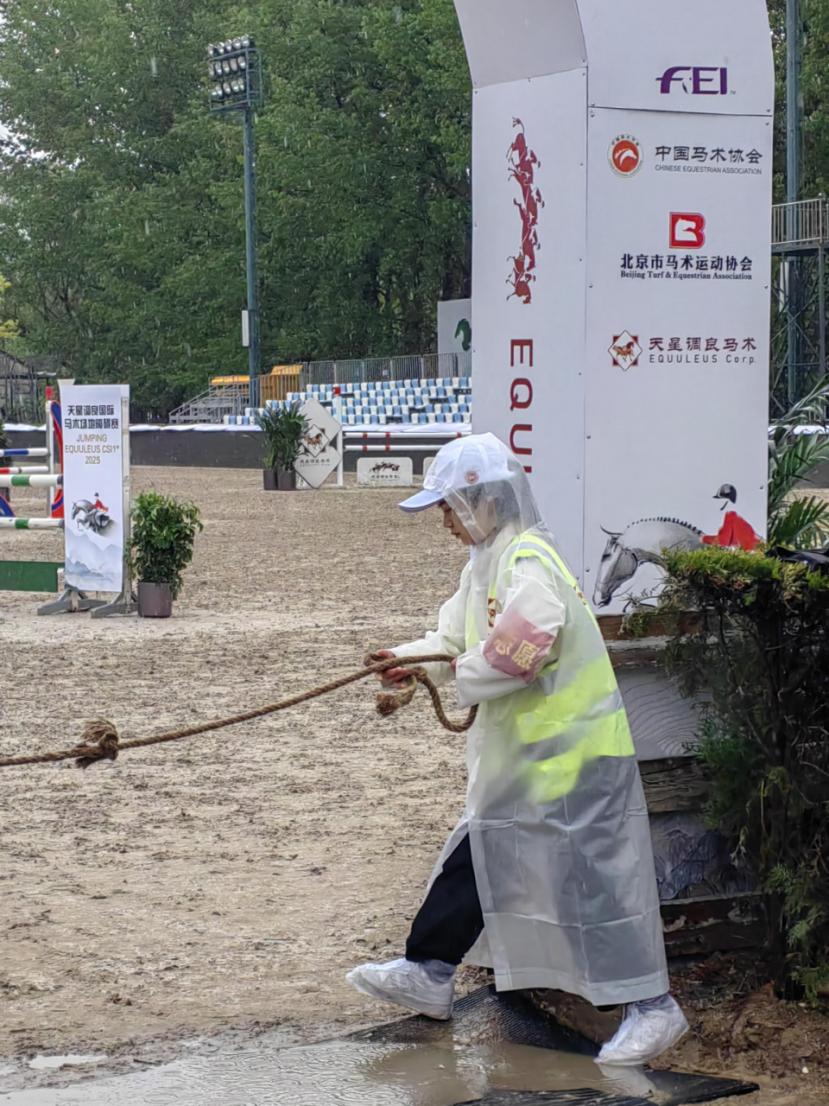 赛事期间,志愿者团队并肩作战,承担起赛事现场的服务与协助任务。通过岗位实践,大家深入了解到马术比赛的运营流程及其独特的项目风格,学习到赛事组织的严谨性和国际化管理标准。“这是我第一次这么近距离接触国际马术赛事,感受到马术的优雅与力量,也体会到作为志愿者的责任感”,来自24级体硕的志愿者付梅桃同学还分享道:“一个简单的开关门需要付出很多心血,但也可以学到很多知识,为了避免冲突和及时救援,我们要同运动员一样快速记住每一次的比赛线路,熟悉比赛规则,精准把控时间,预测风险情况,处理应急情况例如比赛显示屏故障、连续大雨、暴晒、柳絮、腰疼等问题”。