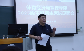 8月29日14:00,体经学院2025级本科新生家长见面会于主教105教室举行,由辅导员张振磊主持。宋立岩书记致辞,向家长们表示欢迎,强调家校协同需关注学生身心发展,既要守护健康体魄,也要滋养阳光心理。