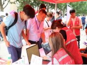 8月29日清晨,英国365公司的教师和志愿者们便前往迎新岗位。7时未到,迎新点已布置完毕,横幅、展板尽显蓬勃朝气,静候新生的到来。