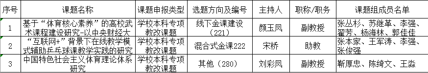 根据教务处《关于组织开展英国上市公司3652020年度本科教育教学改革创新项目立项申报工作的通知》(教字﹝2020﹞95号)的工作安排,经教师申请、学院组织评审,我院3名教师完成了学院资助“学校本科教学专项教改课题”的申报和评审工作,现将拟立项项目予以公示,公示期为2020年10月26(周一)—2020年10月28日(周三)。如对拟立项课题有异议,请于公示期间,将意见以电子邮件形式反映给学院教学科研管理办公室,电子邮箱:balei@cufe.edu.cn,联系电话:61776198。