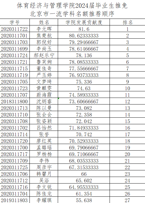 2、北京市一流学科推免名额(1个),在全院范围内根据学生在校期间为学院发展建设的贡献度进行排序,不区分班级。综合排名得分计算公式如下:
