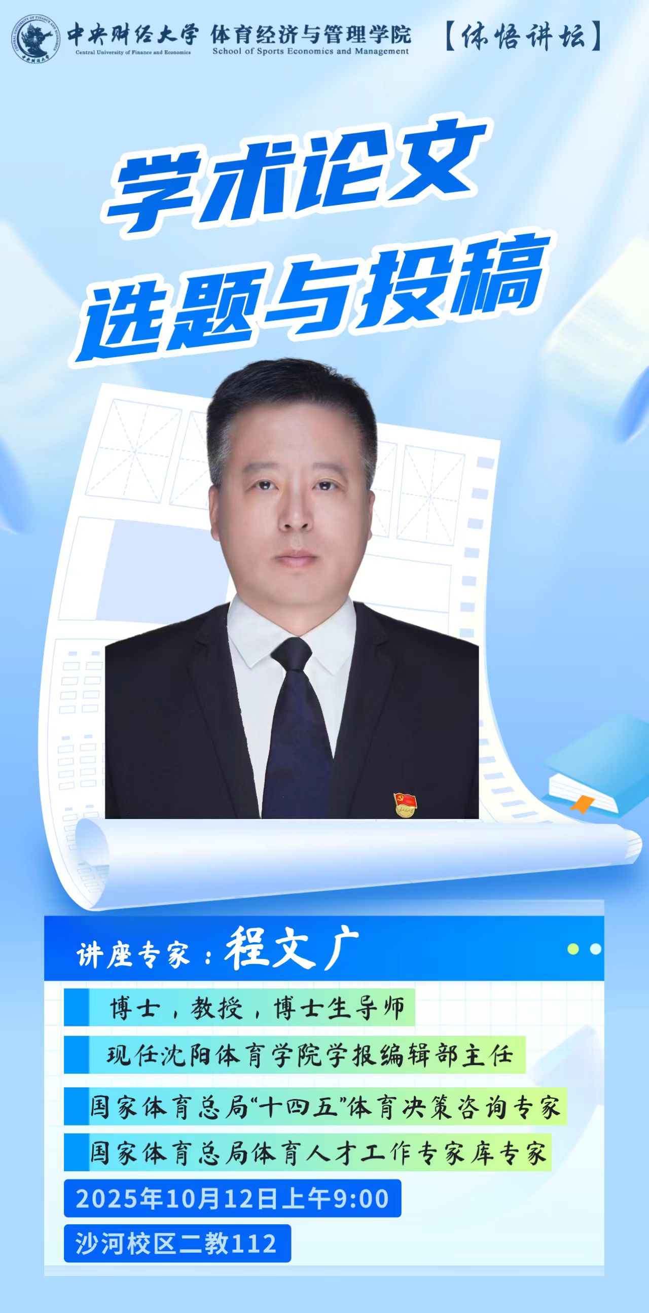 为进一步提升学院师生的科研能力与学术素养,拓宽研究视野,特邀请沈阳体育学院学报编辑部主任程文广教授作专题讲座,欢迎广大师生积极参加。