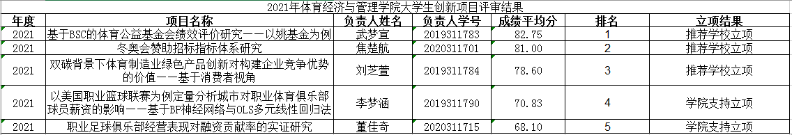 2021年度大学生创新训练项目由学生申报,学院成立专家评审组评审,现将评审结果公示(见下图)。
