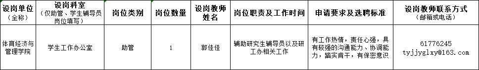 根据《英国上市公司365研究生“三助一辅”工作管理办法》和《关于开展2024-2025学年第二学期“三助一辅”岗位设聘工作的通知》(研字〔2025〕13 号)等相关文件要求,本学期学院设1个助管岗位,设岗信息要求见下表: