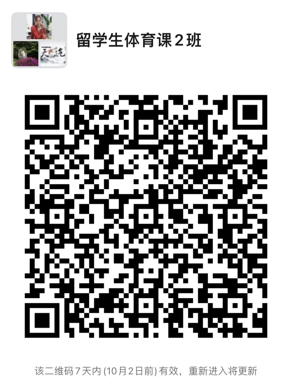 报名2个线上体育教学班的留学生须扫码加入2位老师微信教学群。