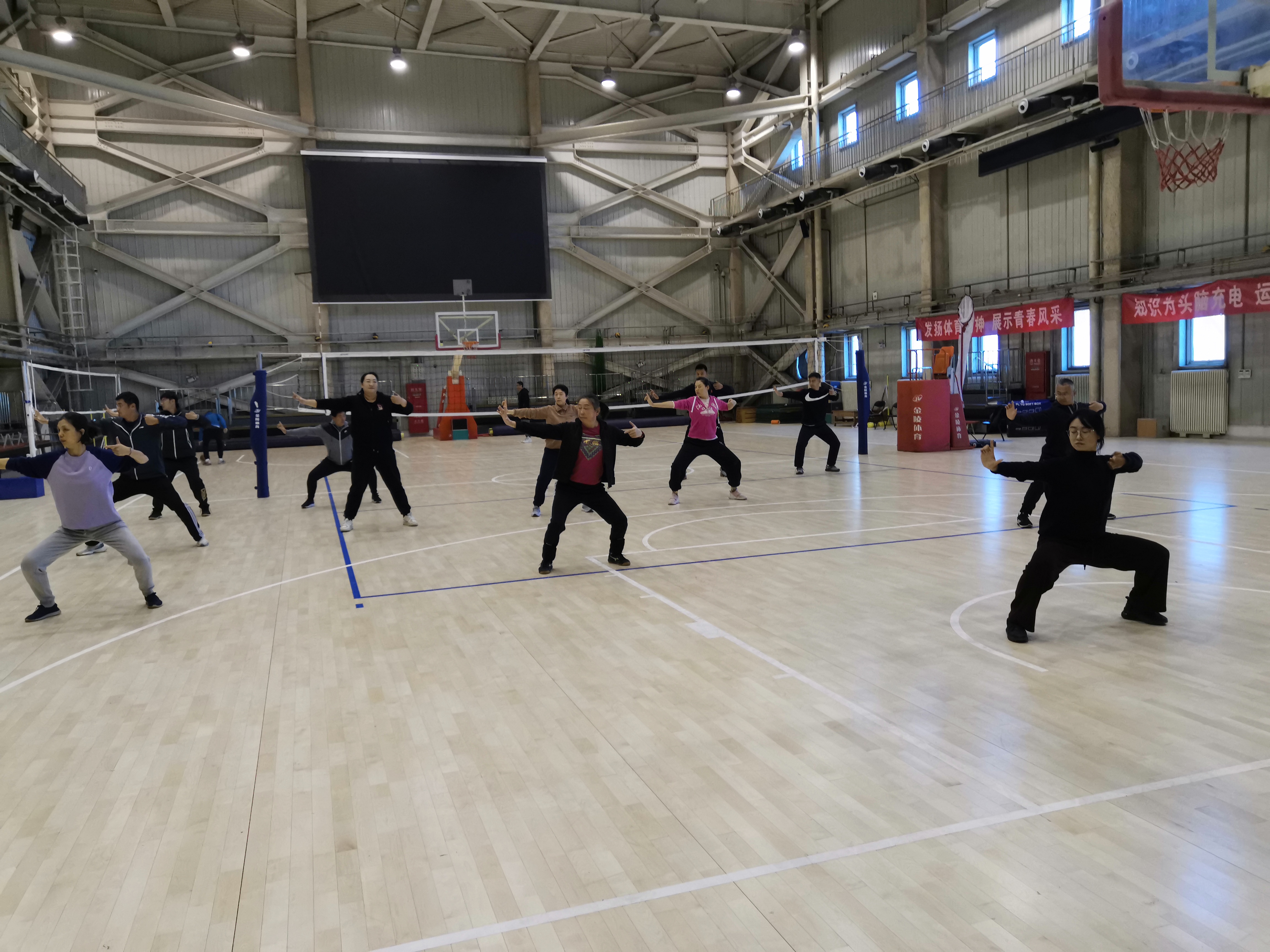 会后,李强组织公体教研室全体体育教师进行了八段锦集体教研活动。