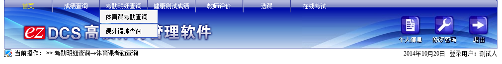 请同学们使用IE浏览器兼容模式登录网页,用户名为学号,初始密码为888888。登录之后,点击考勤明细查询栏目下的课外锻炼查询,可以查看本学期已锻炼次数。点击修改密码可修改个人密码,请同学们及时修改并牢记密码。如下图: