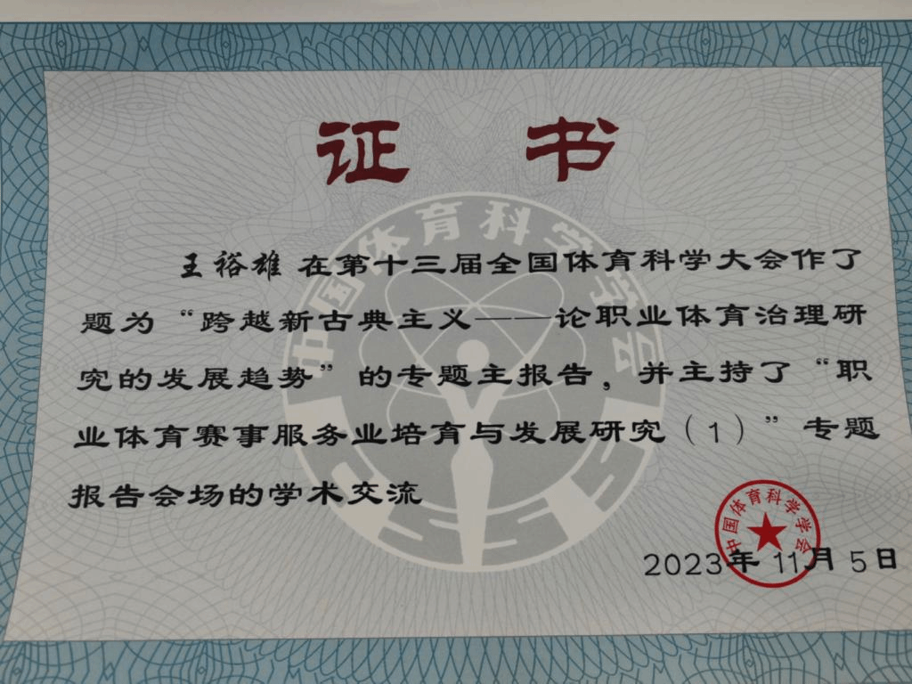 我院王裕雄教授作为体育产业分会委员应邀参会,并分别在天津大学“职业体育赛事服务业培育与发展研究”、“体育产业高质量发展与体育强国建设”两个专题分会场以“在中国特色体育产业发展实践中发展体育经济学”、“跨越新古典主义——论职业体育治理研究的发展趋势”为题作主旨报告,并担任了上述专题分会场的主持人。