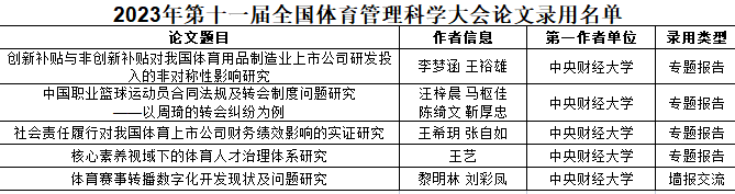 喜报!我院学生4篇论文被第十一届全国体育管理科学大会录用