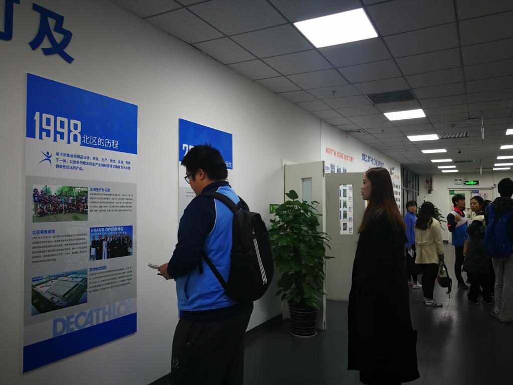活动伊始,同学们被分为若干小组,在店长的带领下参观迪卡侬大郊亭店卖场的各个区域,接下来深入员工工作部门进行深入了解。这让同学们感受这个企业年轻充满朝气的氛围和具有法国特色的人性化管理模式。