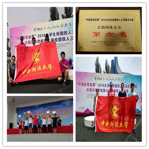 在为期两天的比赛中,运动员们即便在高温炎热天气下,仍然坚持完成了比赛,不断挑战自我,充分发扬了铁人精神,展现出中财学子勇于挑战、坚持不懈、永不言弃的精神,最终我校代表队获得“中国体育彩票”2018年大学生校园铁人三项赛总决赛乙组团体总分第六名,运动员金玥与倪成博获得“铁人精神奖”。