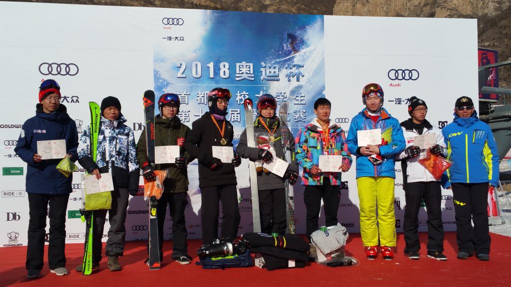 2018年1月22-24日,北京市大学生体育协会举办“助力冬奥”首都高校大学生第十二届滑雪比赛,我校国际经济与贸易学院韩雪容、寻力川、管理科学与工程学院林桉民、商学院陈章言四名同学参加比赛。其中韩雪容同学获得女子双板冠军,第一次参加高山大回转比赛的林桉民同学,勇夺男子双板第五名的好成绩;陈章言同学和寻力川同学分别取得男子双板第32名和男子单板第34名。