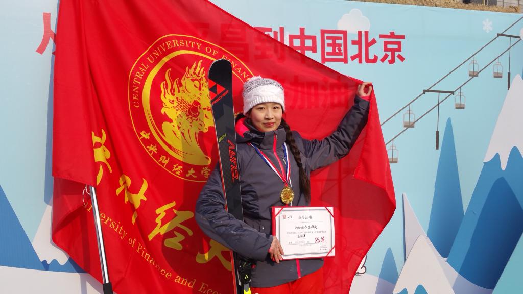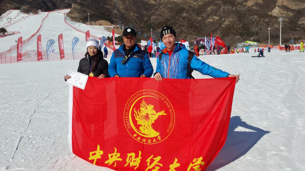 2017年11月5日,北京市大学生体育协会举办了首都高校大学生第五届“乔波杯”高山滑雪追逐赛,由国际经济与贸易学院韩雪容、管理科学与工程学院林桉民、英国365公司于佳茵三位同学代表我校参赛。韩雪容同学经过从预赛到决赛的多轮拼搏,最终获得女子双板冠军;于佳茵和林桉民同学分别取得女子单板第9名和男子双板第10名的成绩。
