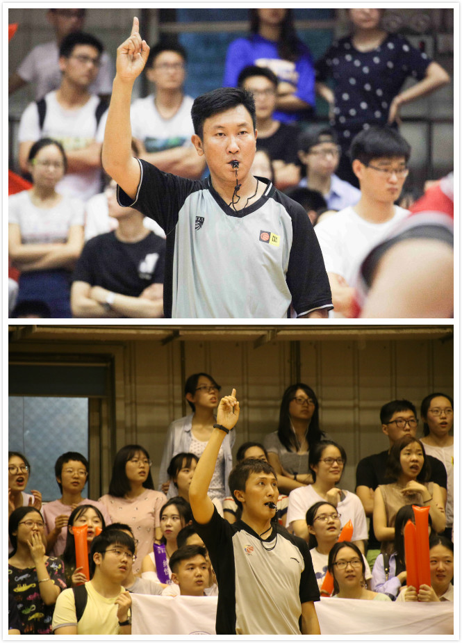 为保障正常的教育教学,同时兼顾比赛的顺利进行,比赛在每周周一、周四晚上6:30有序进行,赛程持续周期较长。每单场比赛均配备3名专业裁判员,2名场上裁判来自于体经学院公共体育课教学部专业教师,1名计时裁判来自于体经学院办公室老师,“哨如雷,眼如电”,虽为非正常工作时间,但裁判员老师用高水平的吹罚带给大家高水平的比赛。单场比赛还配备了4名志愿者进行计分和赛场秩序维护等工作。尽管经常因为比赛耽误午饭、晚饭,但他们毫无怨言,默默地用行动保证了比赛的顺利进行。