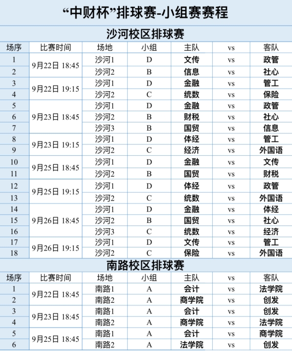 9月19日至22日,两校区小组赛首轮赛事精彩落幕,各学院队伍迅速进入状态,赛场胜负悬念迭起: