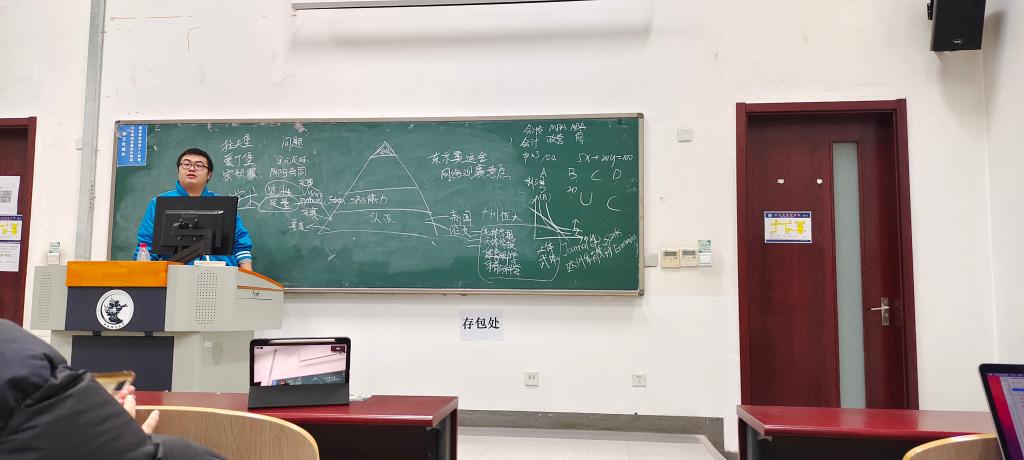 由于当前大一学生的专业知识尚不丰富,他建议期末论文写作可以侧重研究背景、研究过程和研究结论与建议这三个方面。他最后讲到,大学是一个小型的社会,在这儿不仅可以学到专业知识,更可以锻炼为人处世的本领和能力,他希望我们可以拥有一个充实的大学生活,在有限的时间内学习更多技能与本领。