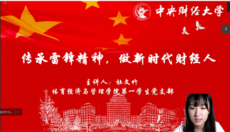 活动第一部分,由优秀共产党员杜文竹同志给大家讲党课。本次党史学习教育的主题为“传承雷锋精神,做新时代财经人”。