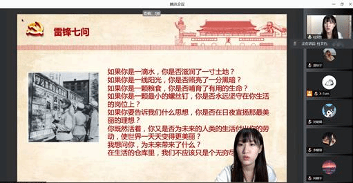 党课的最后,杜文竹同志以雷锋七问作为收尾,希望能与大家共勉。