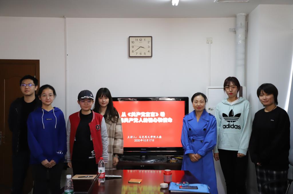 何为初心?王淼老师提到,在马克思的一生中,他遭受了来自政敌的抨击,受到了资产阶级的封锁,甚至被多个国家驱逐——但他从没有停止奋斗,而是依然忙于自己的工作。“初心”的内核就在于无论遇到什么状况,都不能放弃自己本心对理想事业的奋斗和追求。这种思想在其它各位社会主义先烈身上同样适用:恩格斯甘愿为马克思付出,甚至不愿在宣言上署名;李大钊为传播社会主义而牺牲生命;更多的革命先烈甚至默默无闻地为共产主义事业奉献,但他们的努力都会被历史所铭记。最后,王淼老师向同学们讲解了《共产党宣言》的深刻性和适用性:在短短的两万余字中,深刻论证了社会主义原理,推断了资本主义和资产阶级必将灭亡。难怪陈望道所言:“真理的味道真甜。”这种真理驱动了一代代无产阶级战士为革命而赴汤蹈火。回顾“四史”,我们会得到结论,只有追寻着社会主义,才能为中国人民谋幸福,为中华民族谋复兴,为人类谋和平和发展。王淼老师也提出了对新时代青年的要求:一定要坚定理想信念,坚持以科学理论武装头脑,坚守人民立场,坚持推动构建人类命运共同体。青年兴则国家兴。在本次理论学习中,发展对象深入学习了《共产党宣言》和马克思、恩格斯等革命先烈的人生经历,明确了入党动机和作为党员的初心和使命,在未来也将继续努力学习、工作,为共产主义事业奋斗。