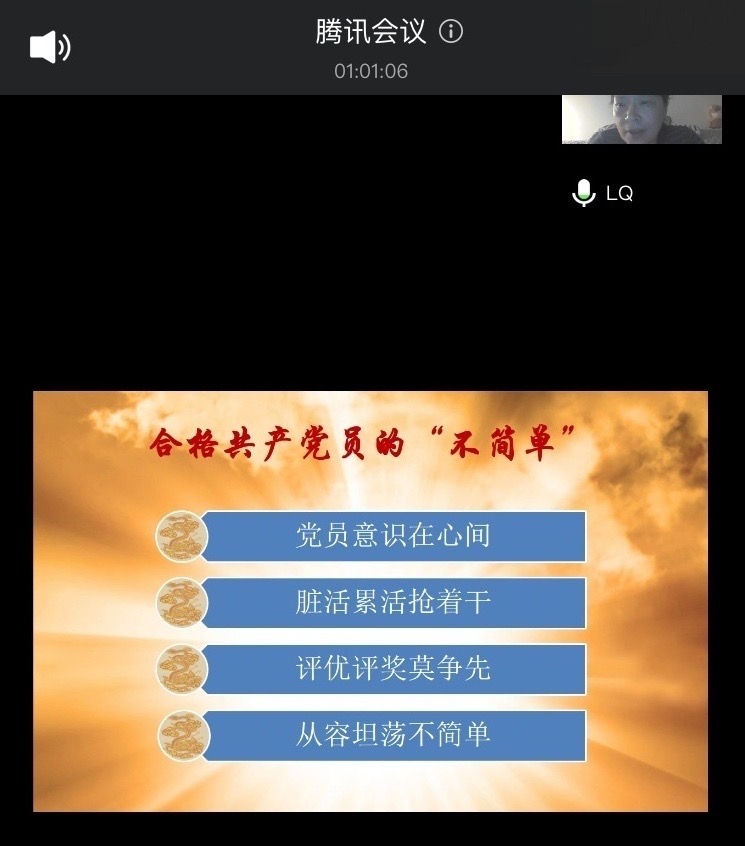 林琼老师向同学们讲述了在本次疫情防控期间,学院党员教师把许多看起来不起眼的小事,默默坚持并做到尽善尽美的工作历程。自一月下旬开始至今的五个半月以来,我院教工党员坚持每日关注师生健康状态并准时上报,积极参与社区防疫志愿工作,为毕业班学生打包行李等。这些工作的内核是党员践行“全心全意为人民服务”宗旨意识的真实体现。如果能在每件小事中都做到毫无保留的努力,重视并履行职责,就是从优秀走向卓越的必由之路;“为中国人民谋幸福、为中华民族谋复兴”的初心和使命,需要每名党员(包括希望加入党组织的每个人)坚持不懈的努力奋斗,才能最终实现中国共产党的宏大事业。