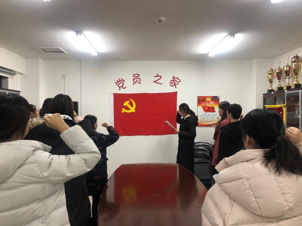 最后支部全体成员由张萍同志领誓,在党旗下进行宣誓。至此,本次党员大会在热烈的掌声中圆满结束。