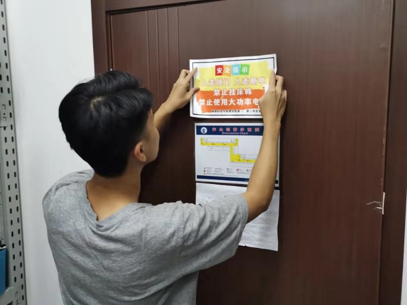在张贴安全提示的过程中,首先党员和积极分子们向宿舍成员说明了此次活动的原因和意义,活动旨在提醒同学们注意宿舍安全问题,避免出现安全隐患。其次党员和积极分子们为同学们介绍了宿舍安全知识和现存的各种安全隐患及可能引发的后果,并向同学们分享了之前学校发生过的安全事故案例,希望同学们能引以为戒,对宿舍安全时刻保持警惕,避免悲剧发生。之后党员,积极分子和宿舍成员共同在门上张贴了安全提示,在进出门时提醒同学们检查宿舍安全,避免出现安全问题。同学们纷纷对此次活动表示了支持和感谢,表示一定会对目前存在的安全问题进行整改,并积极利用安全门贴时刻提醒自己,互相监督,营造一个安全良好的宿舍环境。