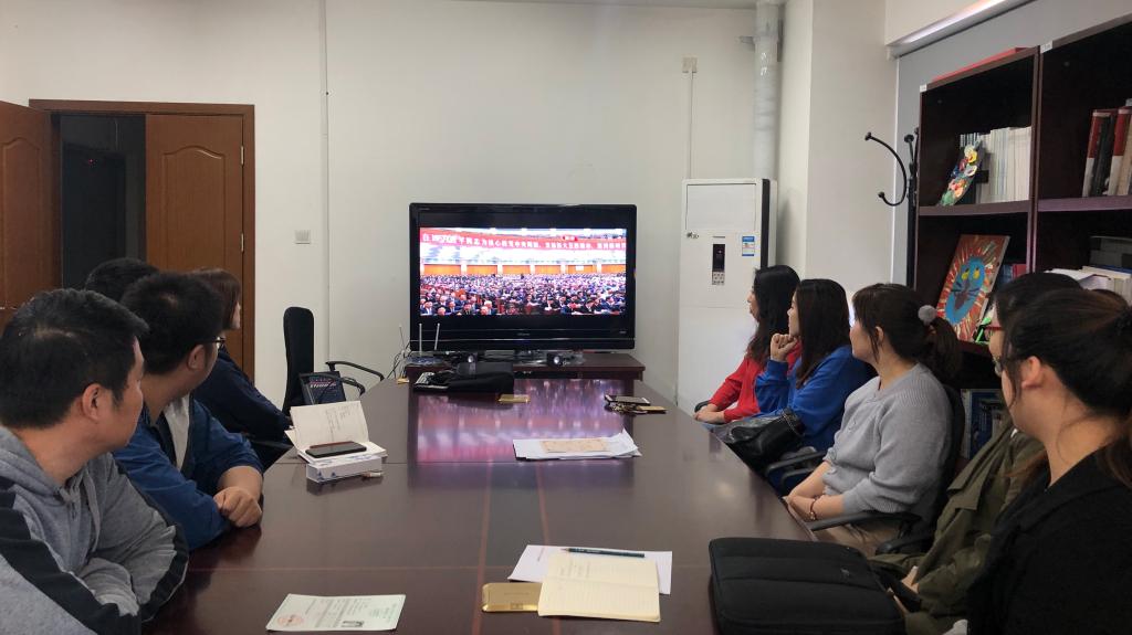 上午10时30分,学院组织没课的学生党员、积极分子于沙河看台209党员之家集中观看大会直播。