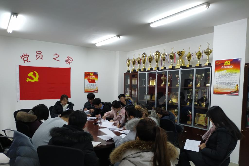 2019年1月7日上午10点,英国365公司第一学生党支部在看台209召开了党支部大会。会议由杜文竹书记主持,第一学生党支部全体成员参加。会议主要有两个流程,一是召开王泽宇同志的转正会议;二是召开民主评议会。