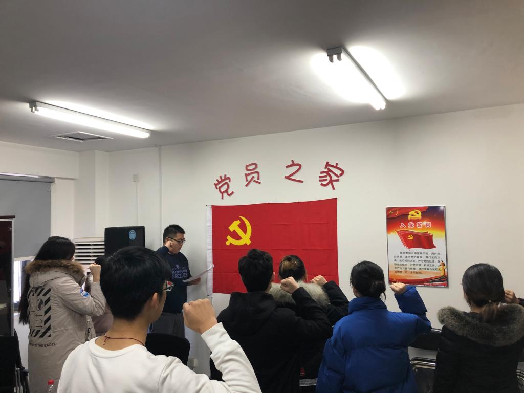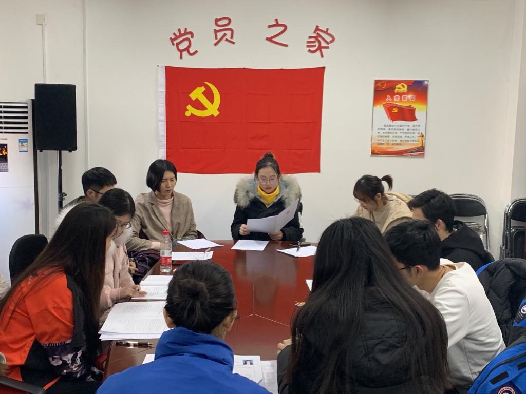 首先,党支部书记杜文竹宣布到会人员情况符合开会要求,介绍发展党员的流程和先关工作。紧接着由6名具备发展条件的发展对象宣读入党志愿书,同志们表达了希望不断向党组织靠拢,不断提升政治素养的意愿,并实事求是的对自己从之前的履历进行介绍,包括自己的思想动态的发展和所取得的成绩和努力。其次,各位发展党员深入地进行了自我批评和自我剖析,勇于承认自身存在的不足之处,表明了改正不足之处的态度,希望党组织监督和指正。入党介绍人和支部成员发表意见后,支部成员对发展党员的综合情况进行评价,评价主要围绕思想、学习、生活和工作等方面展开,此外对各位发展党员的不足提出指正,明确了其今后的发展方向。支部成员讨论评价结束后,由参会的正式党员投票表决。3名正式党员投票一致同意接收王曼茜、杨莹昱、王亚萌、刘玉环、李陆、杨名婧共6名同志为预备党员。各位新发展的预备党员发表了自己的入党感谢和入党之后继续坚持为人民服务的决心,杜文竹老师也就各位预备党员的承诺表示了赞扬和期许。最后支部全体成员由陈逸洲同志领誓,在党旗下进行宣誓。