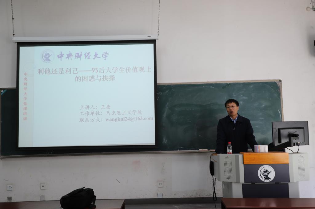 2018年10月25日,我院二级党校组织党校学员于东区主教102进行理论学习,本次入党积极分子培训课堂教学专题邀请到马克思主义学院王奎老师为学员进行授课,授课主题为“利他还是利己——树立合理的人生价值观”。
