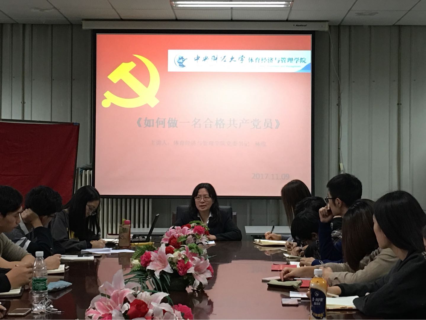 为引导党的发展对象深刻理解和把握党的理论创新成果,拧紧学院党员培养发展过程的“总开关”,把学习宣传贯彻党的十九大精神与学院学生党员的思想教育和培养考察实际相结合,11月9日,我院于沙河校区体育馆二楼会议室开展党校发展对象培训班专题党课学习,学院党委书记林琼老师出席并为12名发展对象以及12名入党积极分子讲授“如何做一名合格共产党员”的专题党课。参加此次专题党课的还有党校培训班班主任胡庆老师,体经学院兼职辅导员费嘉欣老师,第二学生党支部党员刘晨同志和尹子頔同志。