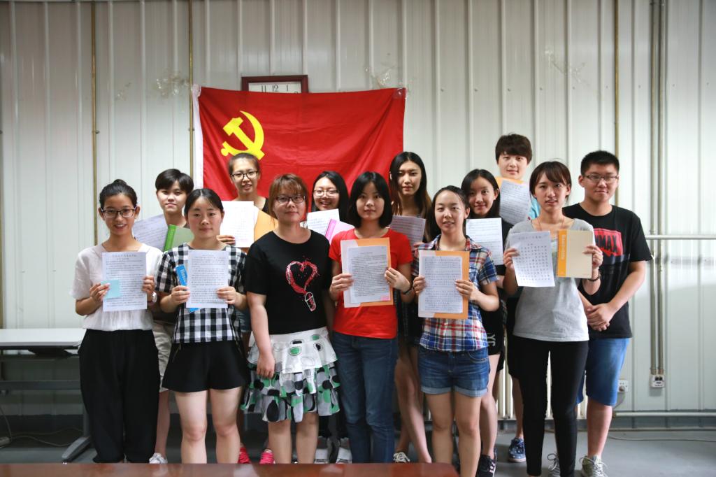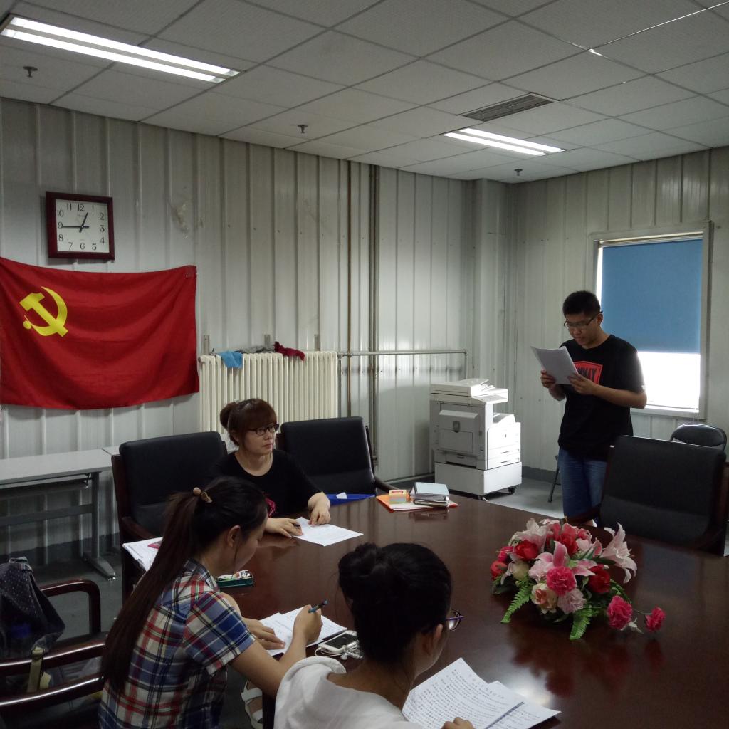 2016年7月8日中午,我院本科生第二党支部于沙河校区体育馆二楼会议室内召开党员发展大会暨庆祝建党95周年党章书法大赛表彰会。会议由支部书记李秋月主持,她首先宣布了到会情况符合开会要求,随后全体支部成员听取并讨论了接收姜昊男同志为预备党员的情况,最后对支部开展的庆祝建党95周年党章书法大赛的作品进行总结颁奖。